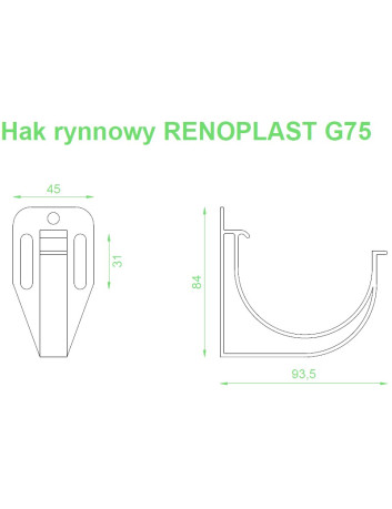 Uchwyt rynnowy przeznaczony do montażu w profilach okapowych Renoplast.