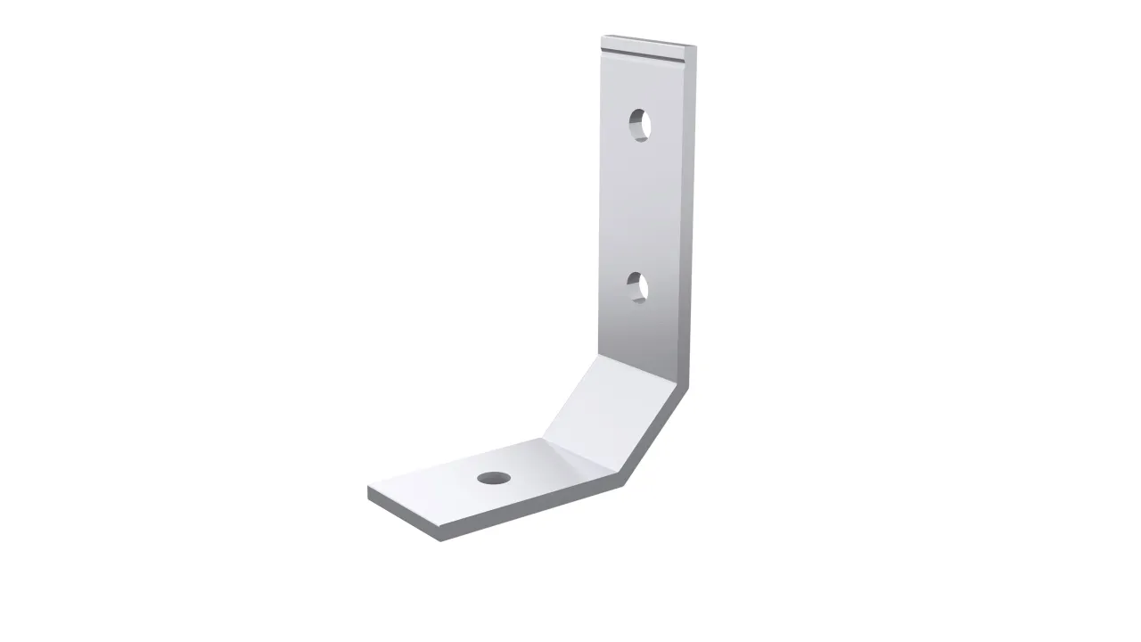Kątownik poziomy wykonany z aluminium służy do wykonywania połączeń kątowych legarów tarasowych.