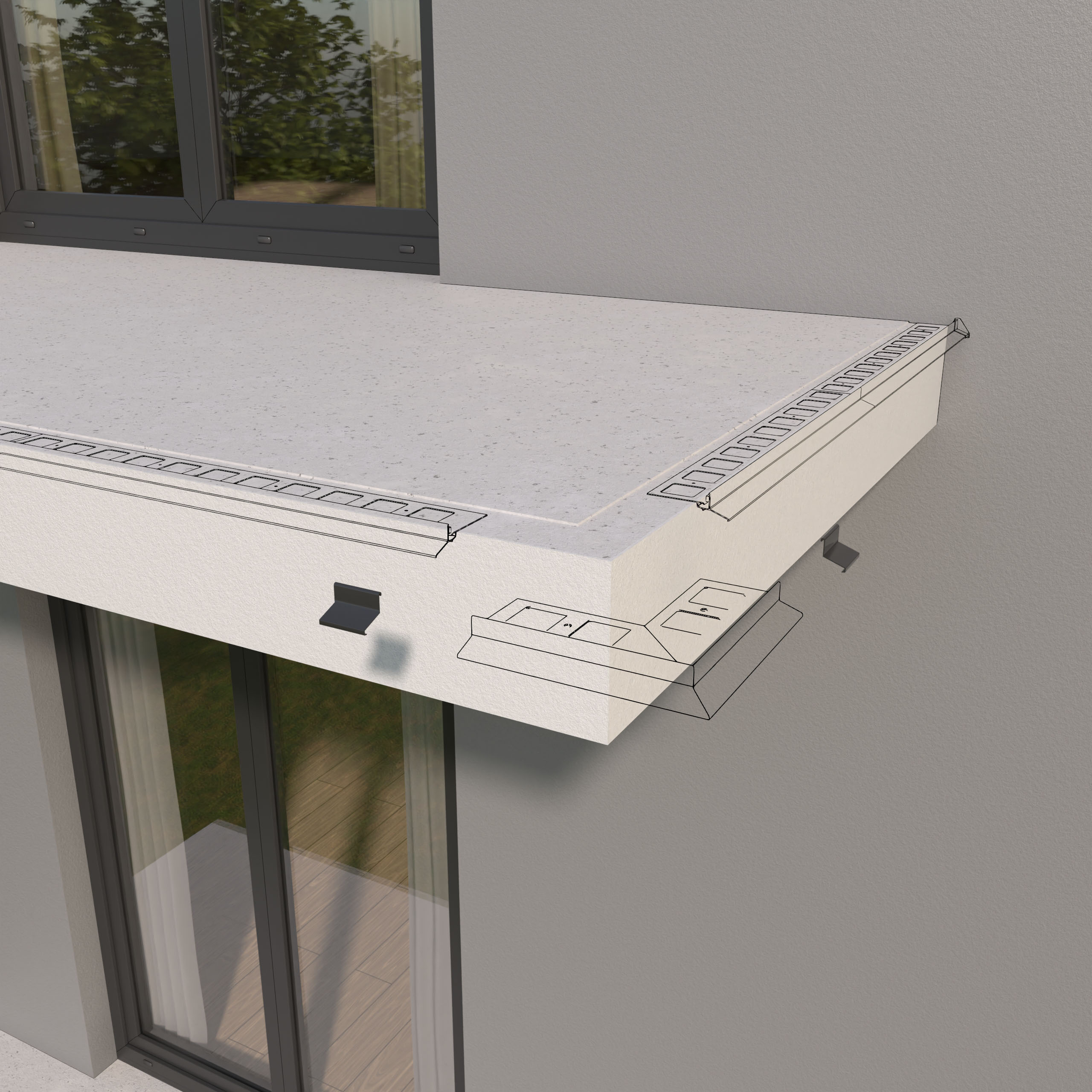 Podczas montażu profili na balkonach i tarasach stosuje się przerwę technologiczną o szerokości 2 mm, mającą na celu niwelowanie naprężeń. Przerwa ta występuje zarówno pomiędzy poszczególnymi profilami, jak i pomiędzy narożnikiem a profilem okapowym. Łączniki służą do estetycznego zamaskowania tej szczeliny.