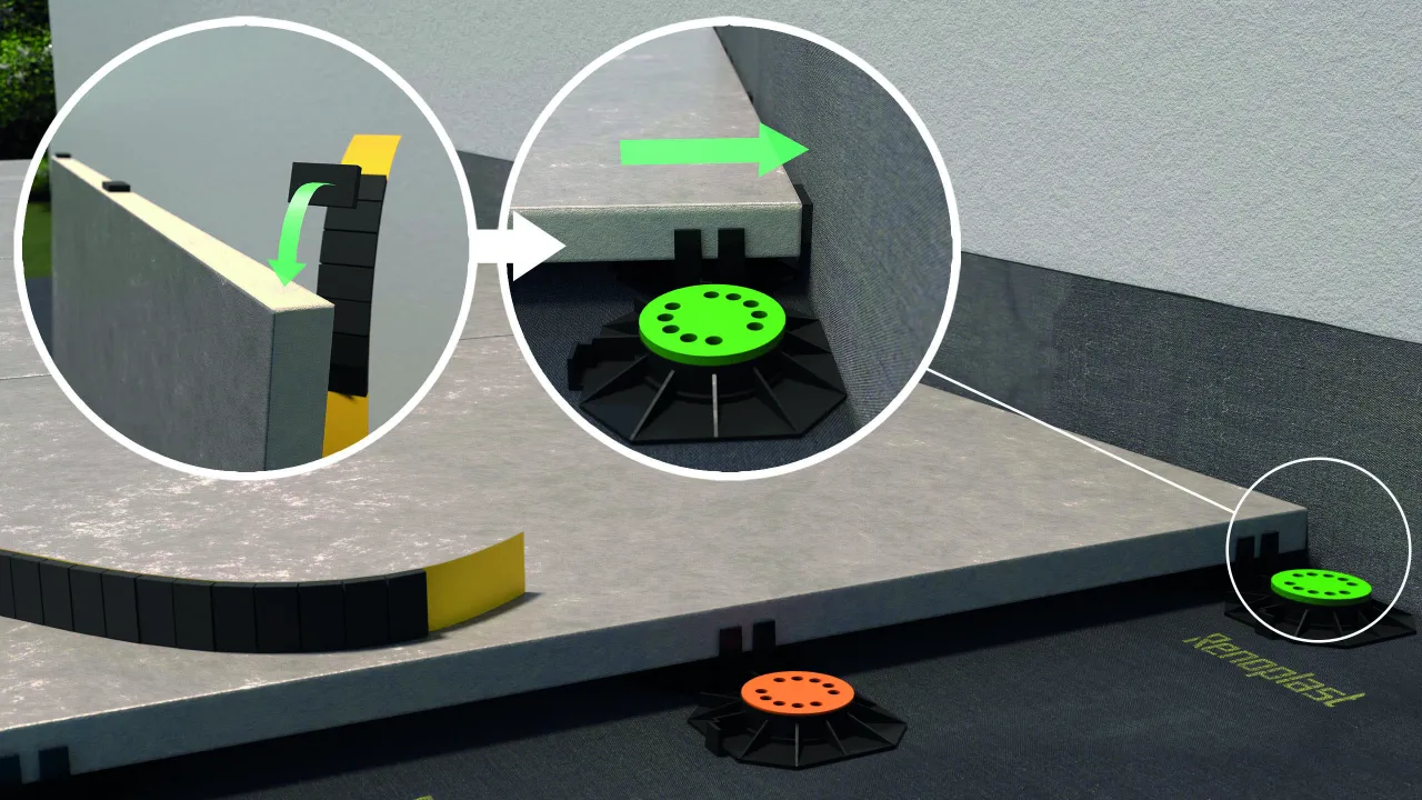 Odbojnik dystansowy 5 mm stanowi element wypełniający szczelinę dylatacyjną pomiędzy płytami a ścianą, zabezpieczając elewację przed uszkodzeniami wynikającymi m.in. z pracy termicznej posadzki wentylowanej. Montaż odbojników dystansowych jest szybki i nie wymaga użycia narzędzi.