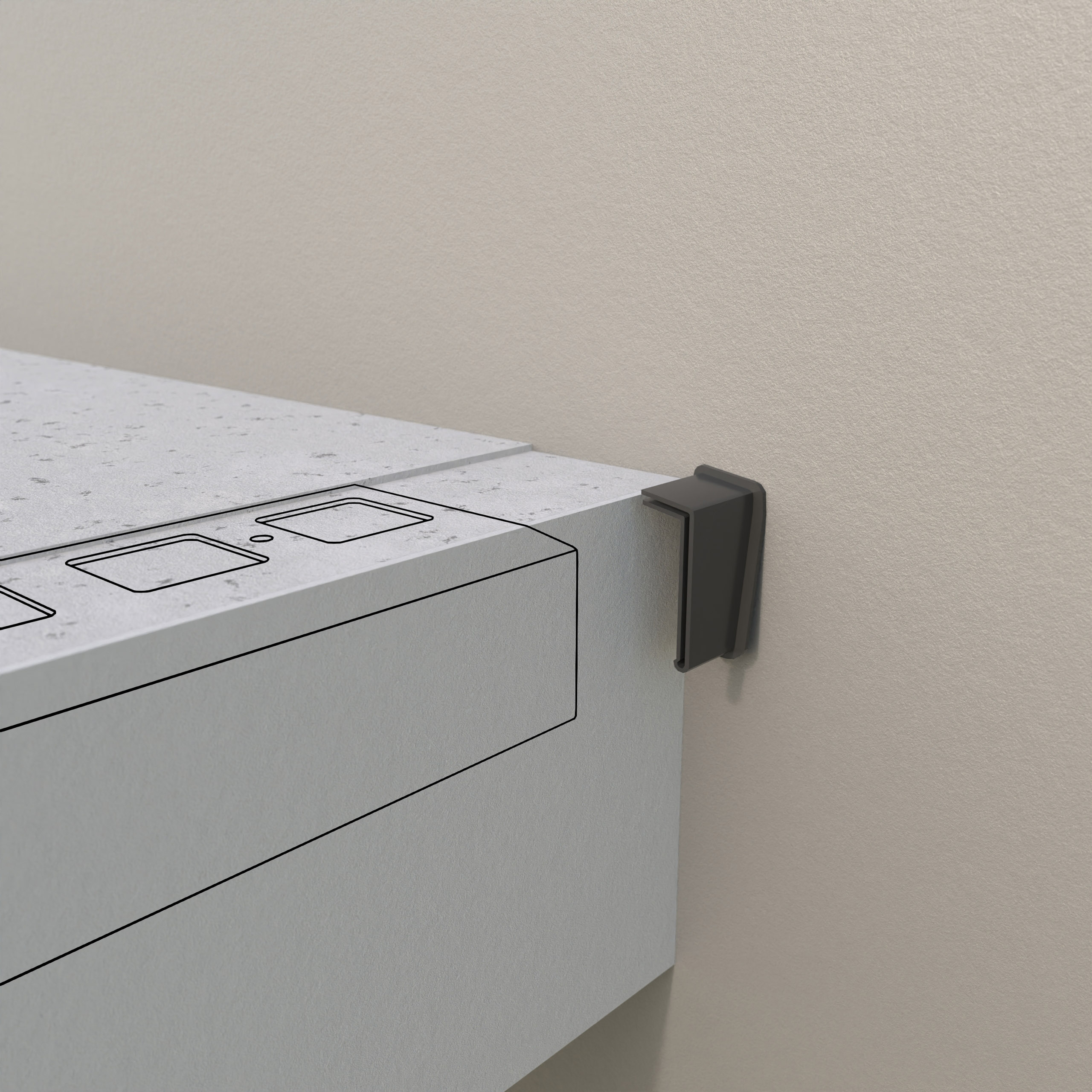 Element wykonany z tworzywa sztucznego, przeznaczony do montażu pomiędzy ścianą budynku a profilem okapowym K301.